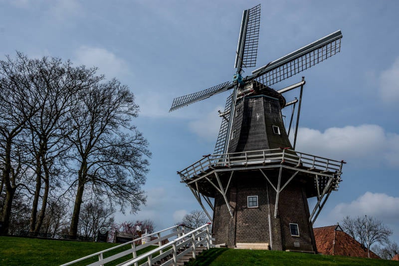 Garnwerd - Molen De Meeuw en ophaalbrug over Reitdiep