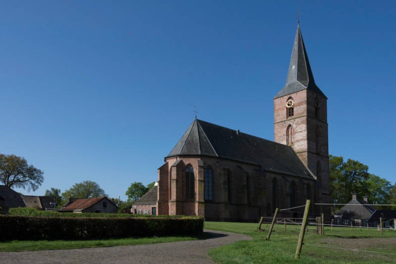 Vanmorgen om 07:45 uur wakker geworden, opgestaan, me gewassen, een beker koffie gedronken en van de camping naar de bushalte bij de rotonde in Schoonloo gefietst. Om 09:07 uur had ik de bus naar Rolde. Het was ongeveer 1 km lopen naar het centrum, waar ik het Pieterpad weer opgepakt heb. Bij de Plus nog ff een zak krentenbollen gekocht, ik had nog niet ontbeten hè! Tussen het kerkje met kerkhof en een veld met de hunebedden D17 en D18 op een bankje in de stralende zon 2 krentenbolletjes opgepeuzeld! Goed begin! Een heel eind over het tracé van de vroegere spoorlijn Assen - Stadskanaal gelopen. Kom ik toch ineens een dixie tegen, super netjes, schoon en mét wc papier ... en ik móest al een tijdje heel nodig! Dankbaar gebruik van gemaakt! Héél veel zingende vogels om me heen, een genot om naar te luisteren! Langs en door weilanden, sommige fel geel gekleurd door de vele paardenbloemen.