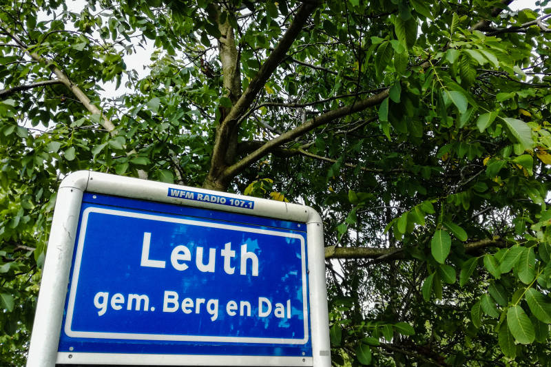 Na het ontbijt (met verse Duitse broodjes) van de Camperplaats in Kleve naar Millingen gereden, zo'n 13 km. Een mooi parkeerplaatsje gevonden bij AH in de schaduw van een boom. Om 9:30 uur gestart met etappe 17! Ik vond dit wel de mooiste etappe tot nog toe! Je waant je soms in het buitenland (dat ben je natuurlijk ook, je passeert regelmatig de grens met Duitsland!). Hier en daar zie je nog de restanten van slagbomen. Eerst nog een stukje rivierenlandschap met veel vee en boerderijen op terpen. Ik had gehoopt in het dorpje Leuth een bakkie leut te kunnen nemen, maar dat is niet gelukt. Daar wel 2 aardige, gezellige mannen ontmoet (69 en 71) die ik de rest van de etappe regelmatig tegen kwam. Nog meer fijne mensen ontmoet, o.a. bij de koffiestop op de Duivelsberg (heftige bult beklimmen!!!). Daar hebben ze, zeer strategisch, een pannenkoekenrestaurant neergezet! Tóch heb ik daar alleen een kop koffie gedronken! En van het toilet gebruik gemaakt, waar de wanden behangen zijn met "bosbehang" en waar je "bosgeluiden" op de achtergrond hoort.