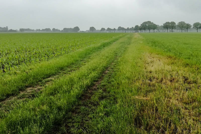 Langs velden en akkers met eindeloze rijen gewassen