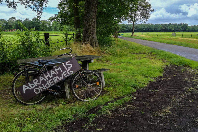 Na het ontbijt met een omweggetje naar Rheeze gefietst. In Hardenberg nog gauw ff de Oele Mölle gekiekt. Bij het prachtige restaurant De Rheezer Kamer een "emmer" koffie gedronken (dat was een flinke bak lekkere koffie!). M'n fiets daar gestald en 5,5 km van Rheeze naar Hardenberg (+ camper) gewandeld, de eerste km's van de volgende = 9e etappe. Op m'n sandalen (dat viel niet eens tegen!), vanwege de blauwe teennagels die ik de 2 vorige etappes opgelopen heb door met kletsnatte schoenen en sokken te lopen!